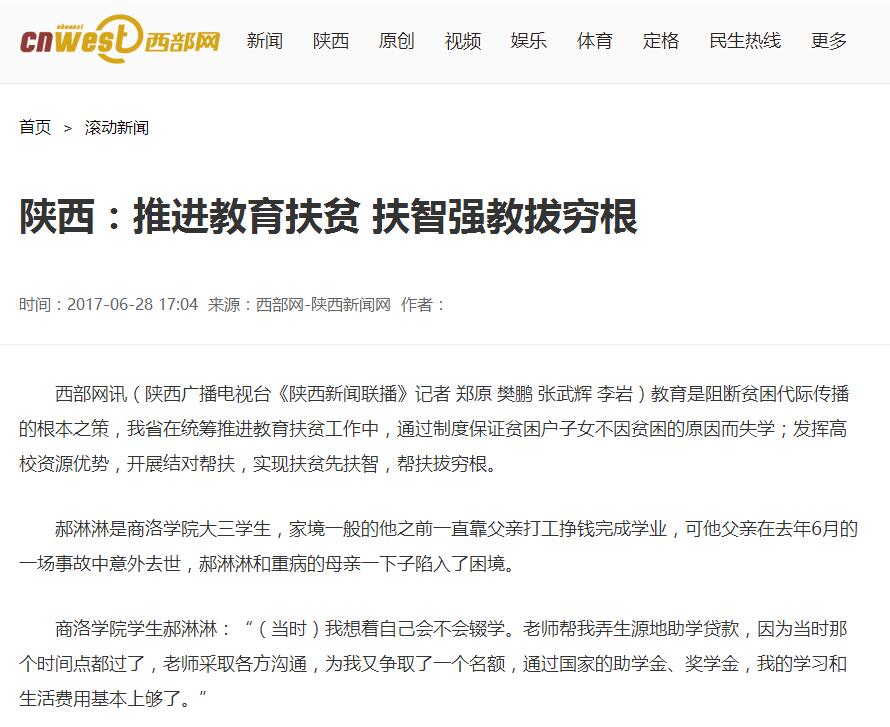 【西部网】陕西:推进教育扶贫 扶智强教拔穷根