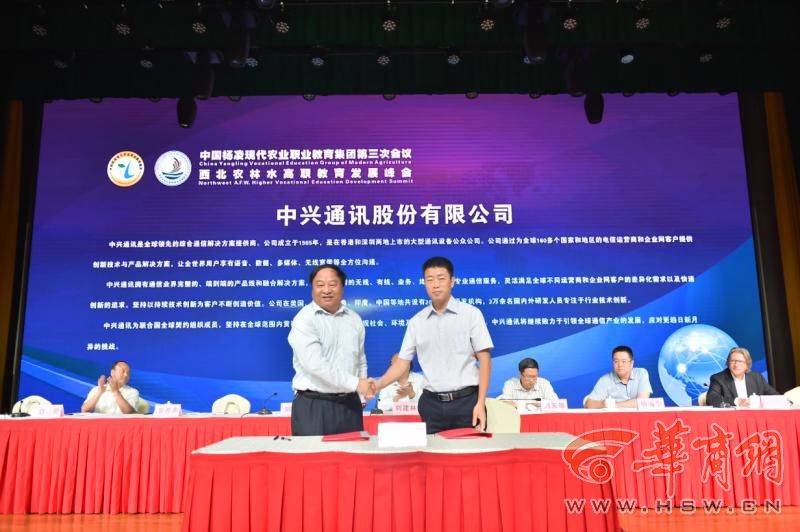 会上,杨凌职业技术学院党委书记赵曼,杨凌示范区党工委委员、管委会副主任刘天雄,教育部职业教育与成人教育司农村教育处处长刘杰,荷兰朗蒂斯教育集团总监范康普博士分别致辞。刘建林、刘天雄、赵曼共同启动“西北农林水高职教育发展峰会”仪式,中国杨凌现代农业职业教育集团秘书长、杨凌职业技术学院副院长、西北农林水高职教育发展峰会秘书长张永良介绍了峰会发起相关情况。中国杨凌现代农业职业教育集团与荷兰朗蒂斯教育集团签订了《开展涉农专业职业教育师资培训和技术咨询》合作备忘录;杨凌职业技术学院与中兴通讯股份有限公司签订了“中兴通信学院”共建协议书,并举行了揭牌仪式。
