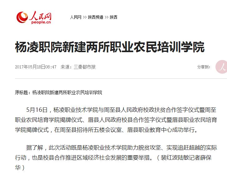 【人民网】杨凌职院新建两所职业农民培训学院
