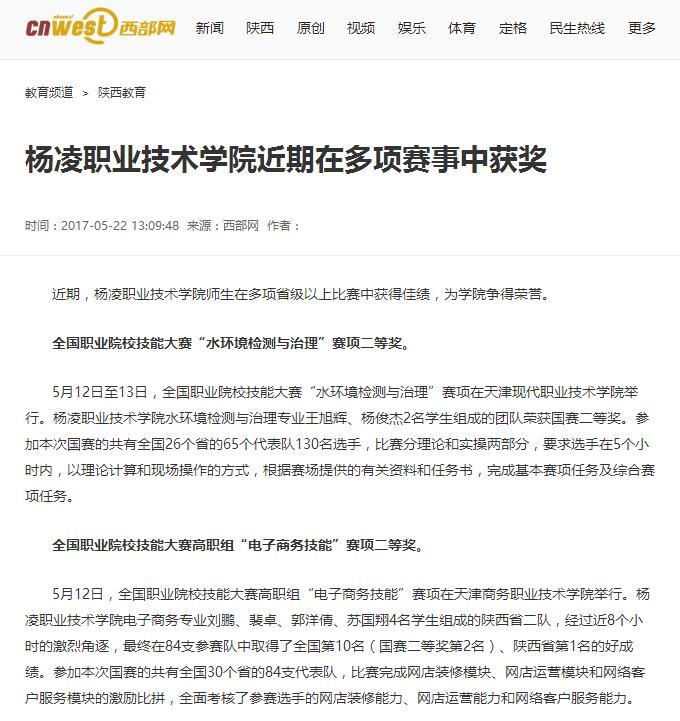 近期,杨凌职业技术学院师生在多项省级以上比赛中获得佳绩,为学院争得荣誉。
