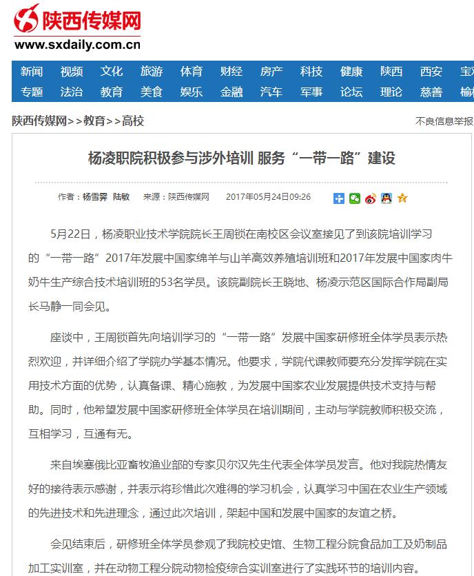 【陕西传媒网】杨凌职院积极参与涉外培训 服务“一带一路”建设