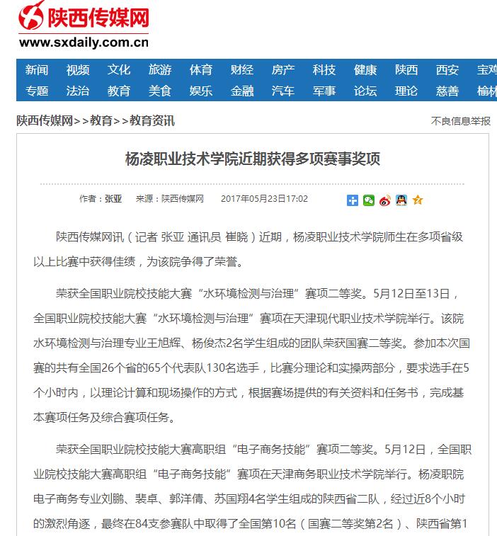 【陕西传媒网】杨凌职业技术学院近期获得多项赛事奖项