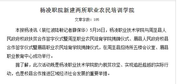 【三秦都市报】杨凌职院新建两所职业农民培训学院