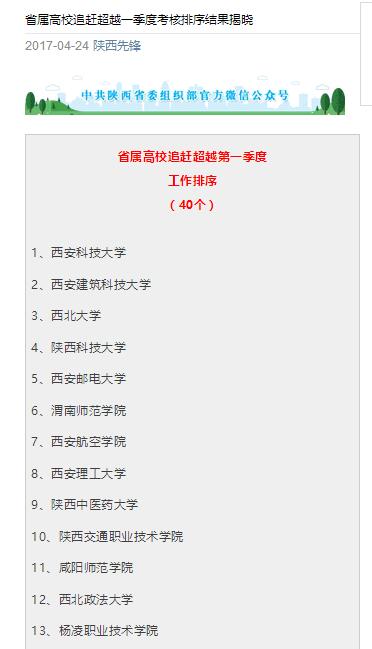 【陕西先锋】省属高校追赶超越一季度考核排序结果揭晓