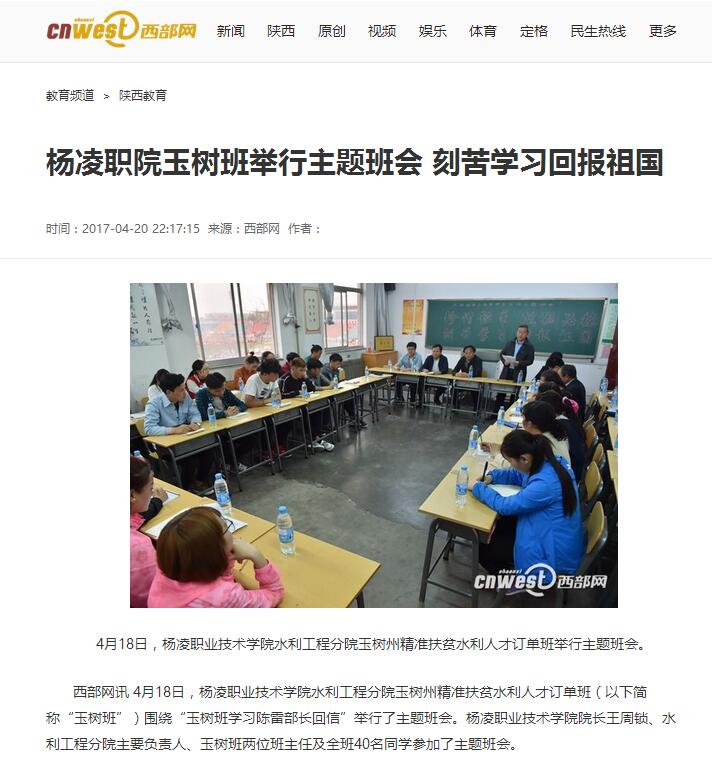 【西部网】杨凌职院玉树班举行主题班会 刻苦学习回报祖国