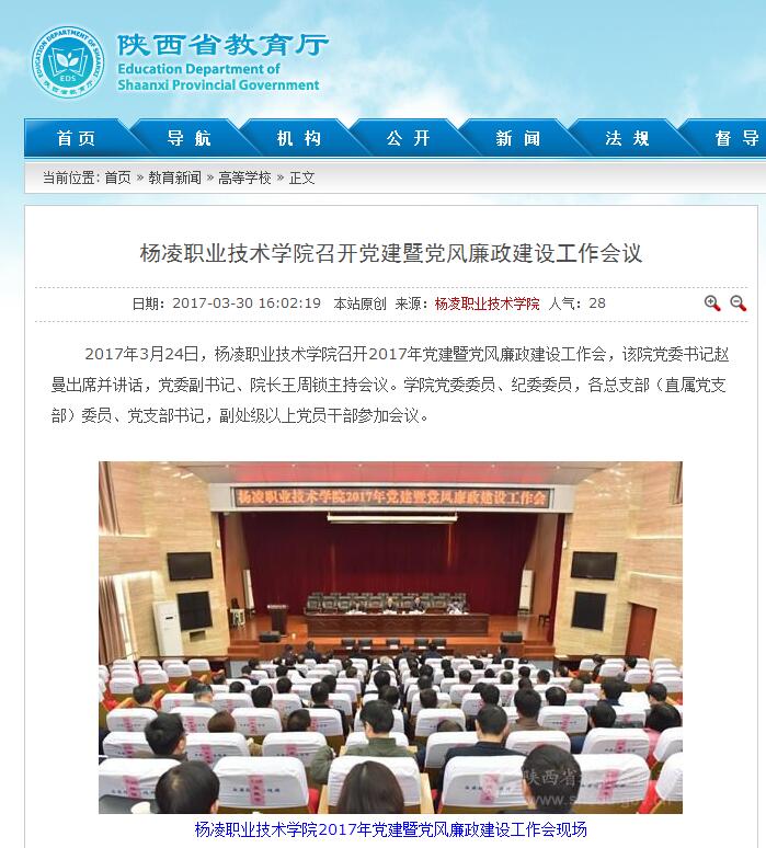 【陕西省教育厅】杨凌职业技术学院召开党建暨党风廉政建设工作会议