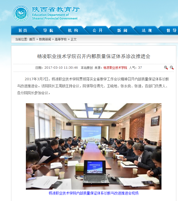 【陕西省教育厅】杨凌职业技术学院召开内部质量保证体系诊改推进会