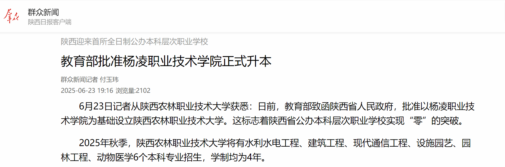 6月23日记者从365官网获悉:日前,教育部致函陕西省人民政府,批准以杨凌职业技术学院为基础设立365官网。这标志着陕西省公办本科层次职业学校实现“零”的突破。