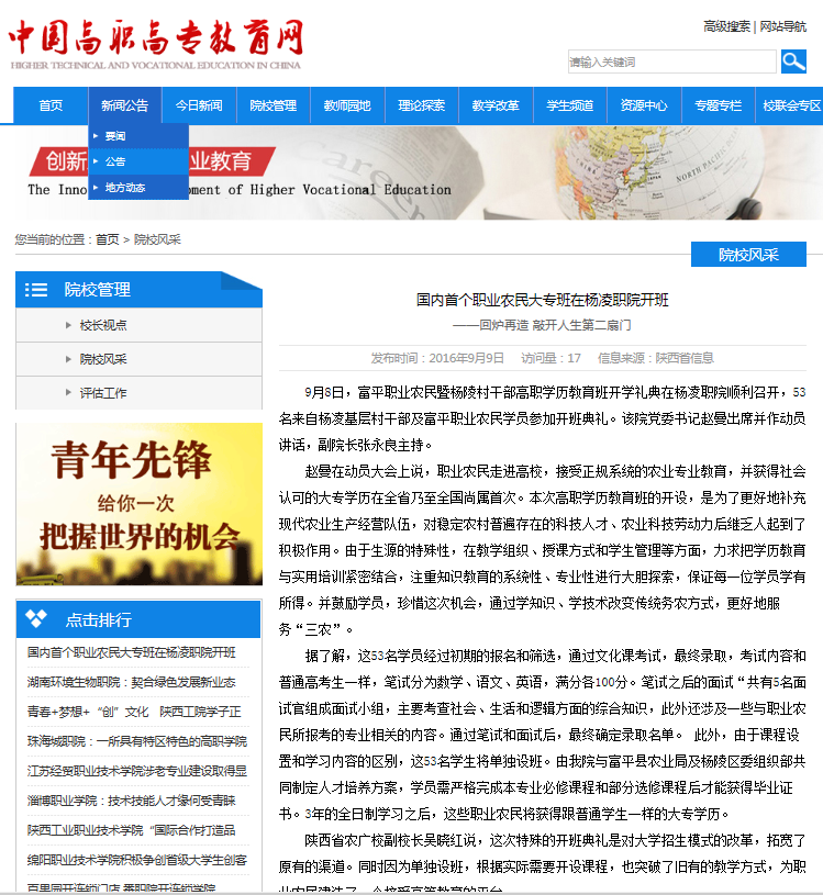 【中国高职高专网】国内首个职业农民大专班在杨凌职院开班