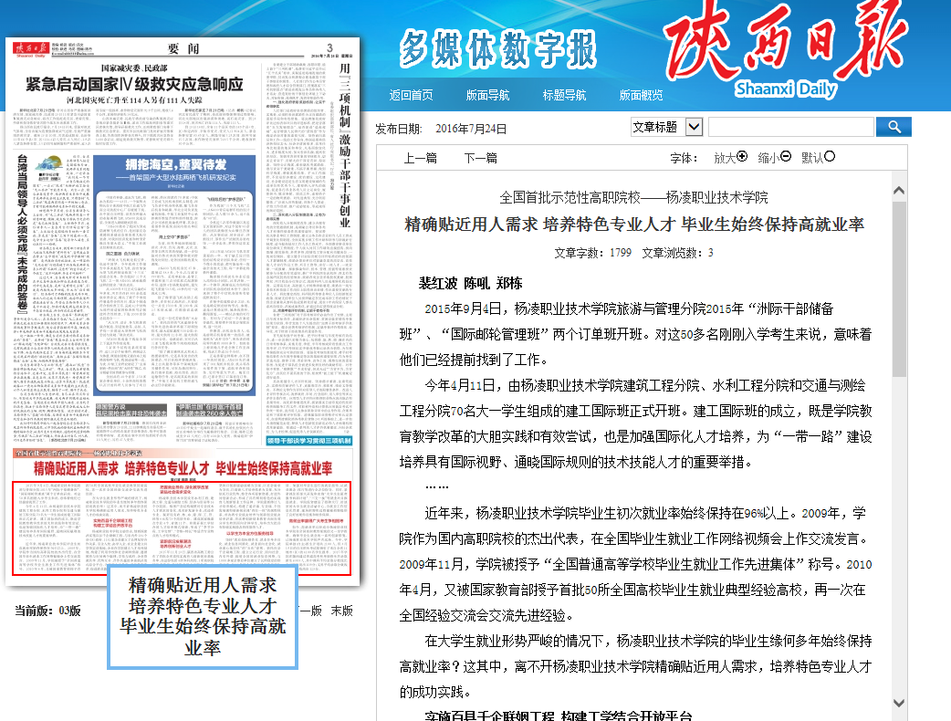 【陕西日报】精确贴近用人需求 培养特色专业人才 毕业生始终保持高就业率