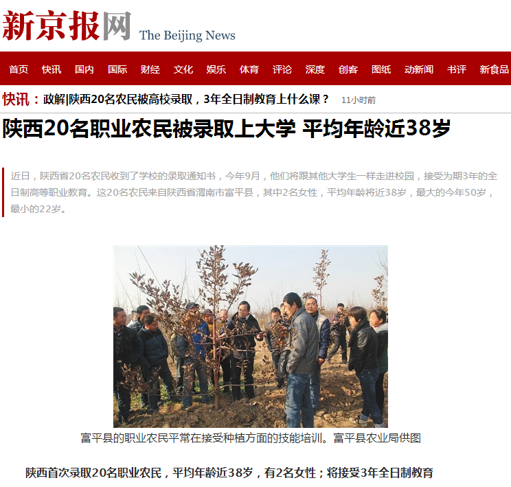 记者了解到,这20名将步入大学的职业农民全部来自陕西富平县,而负责组织他们报名的是该县的农业局。