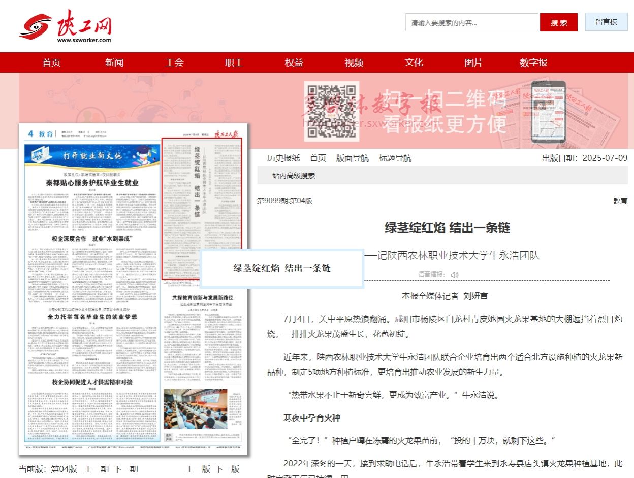 【陕西工人报】绿茎绽红焰 结出一条链——记365官网牛永浩团队