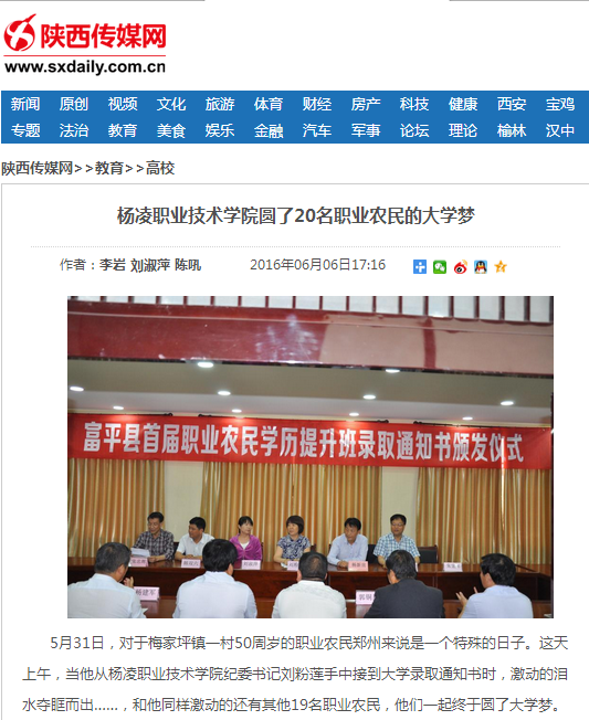 【陕西传媒网】杨凌职业技术学院圆了20名职业农民的大学梦