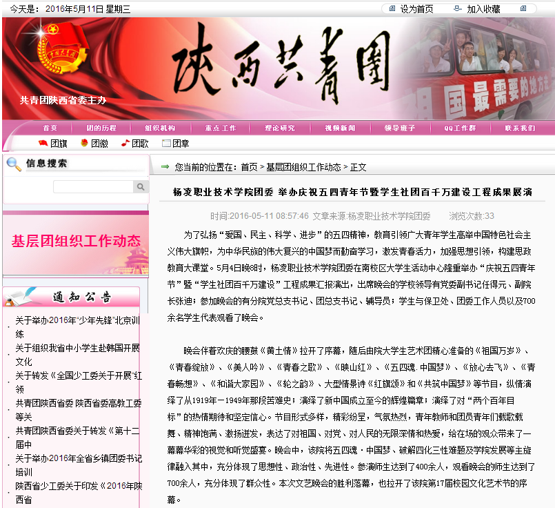 【陕西省共青团】杨凌职业技术学院团委 举办庆祝五四青年节暨学生社团百千万建设工程成果展演