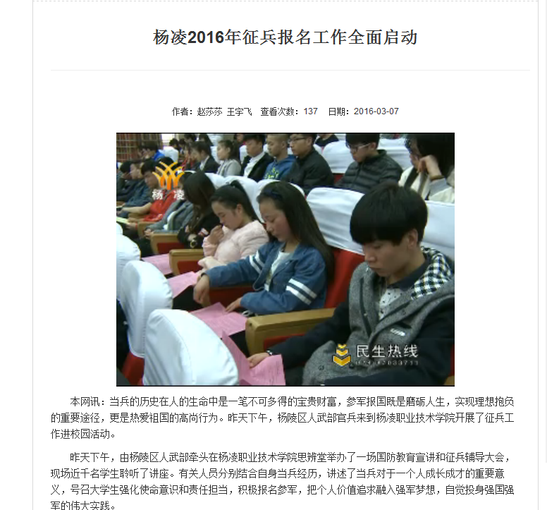 【杨凌电视台】杨凌2016年征兵报名工作全面启动