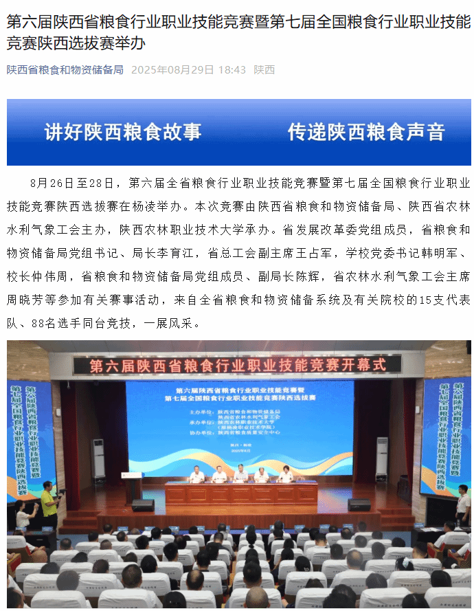 【陕西省粮食和物资储备局】第六届陕西省粮食行业职业技能竞赛暨第七届全国粮食行业职业技能竞赛陕西选拔赛举办