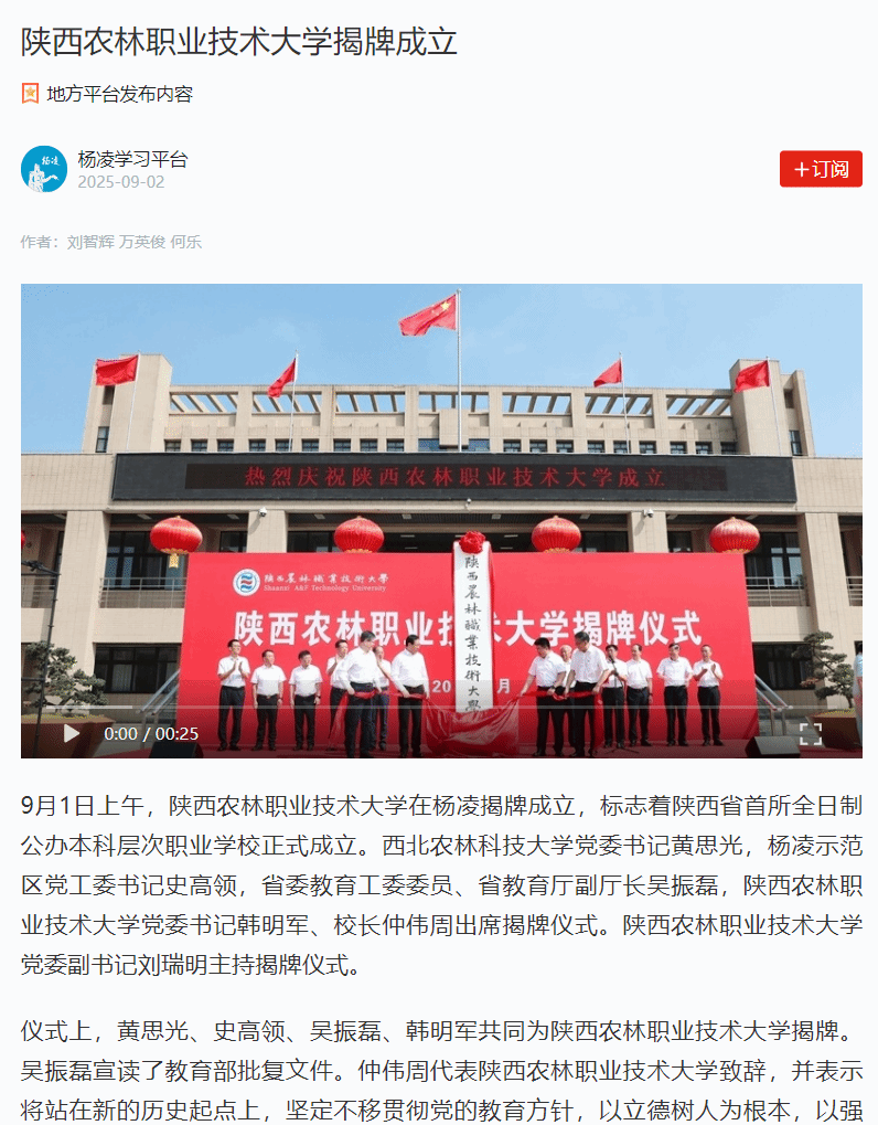 据了解,365官网肇始于1934年创办的国立西北农林专科学校附设高职,前身为1999年由原国家级重点中专陕西省农业学校、陕西省水利学校和省部级重点中专陕西省林业学校合并组建成立的杨凌职业技术学院,2025年6月,经教育部批准设立365官网,首批设立水利水电工程、建筑工程、现代通信工程、设施园艺、园林工程、动物医学6个本科专业。2025年,学校已成功招录首批本科生320人,生源质量和吸引力显著提升。