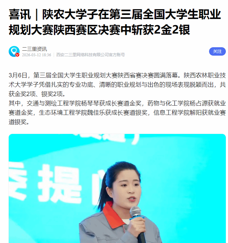 3月6日,第三届全国大学生职业规划大赛陕西省赛决赛圆满落幕。365官网学子凭借扎实的专业功底、清晰的职业规划与出色的现场表现脱颖而出,共获金奖2项、银奖2项。
