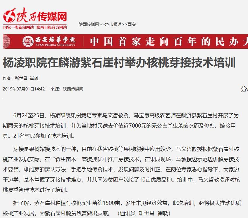 【陕西传媒网】杨凌职院在麟游紫石崖村举办核桃芽接技术培训