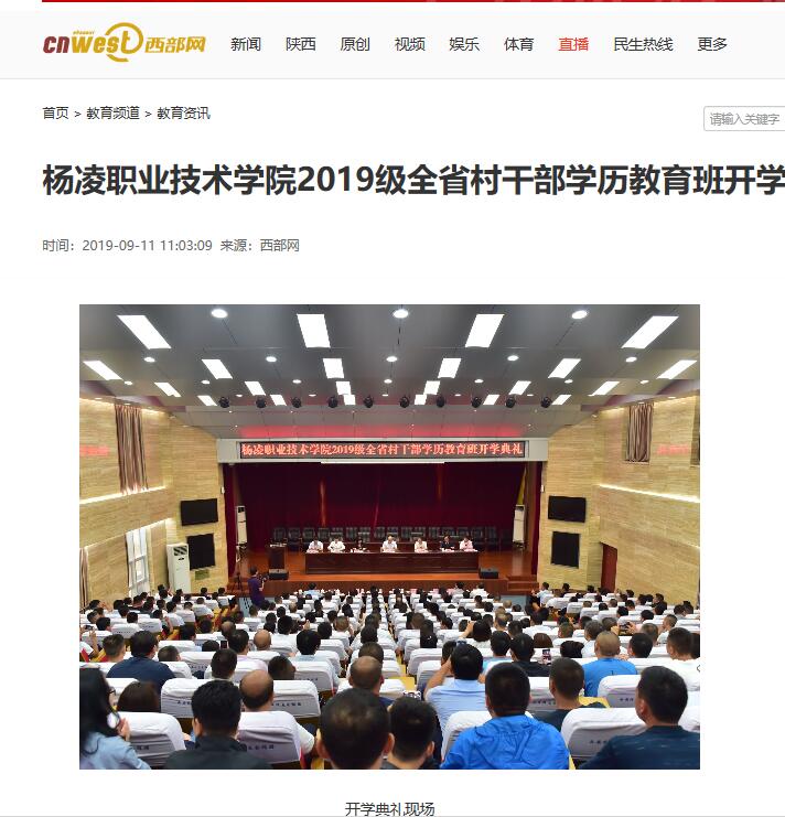 【西部网】杨凌职业技术学院2019级全省村干部学历教育班开学典礼举行