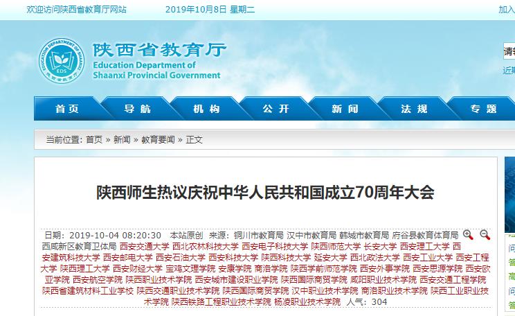 【杨凌职业技术学院】为庆祝新中国成立70周年,北京天安门广场举行了盛大的国庆阅兵,该院全体师生通过电视、电脑、手机等多种方式观看了阅兵式。习近平总书记的重要讲话和隆重的阅兵式在学院师生中引起广泛热议。